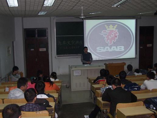 上届汽车俱乐部副会长详细介绍了汽车的相关知识。从德国宝马、奔驰等,意大利法拉利、兰博基尼到英国阿斯顿—马丁,法国标致、雷诺;从汽车的标志、发展到大致价格;从越野车、跑车到赛车,成员的精彩演讲引起了大家阵阵掌声。汽车背后的故事,标志的寓意更是调起了同学的兴趣。同学现场反应活跃,积极说出自己对汽车的相关了解,踊跃报名加入新会员。