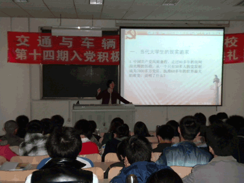首先,李书记简单回顾了中国共产党80多年来的坎坷但光辉的历程,从50多个人发展到7000多万党员。共产党是先进的政党,吸引着无数满怀热血的有志之士义无反顾地投身于报效祖国的事业中来。随后,李书记切入正题,从申请入党条件、共产党员的基本条件等三个方面向新学员具体地讲解了共产党员应具备的条件。并在此基础上具体阐释了共产党员的权利与义务。最后,她希望学员能够端正入党动机,努力学习,通过实践锻炼,不断地提升自身的思想觉悟。