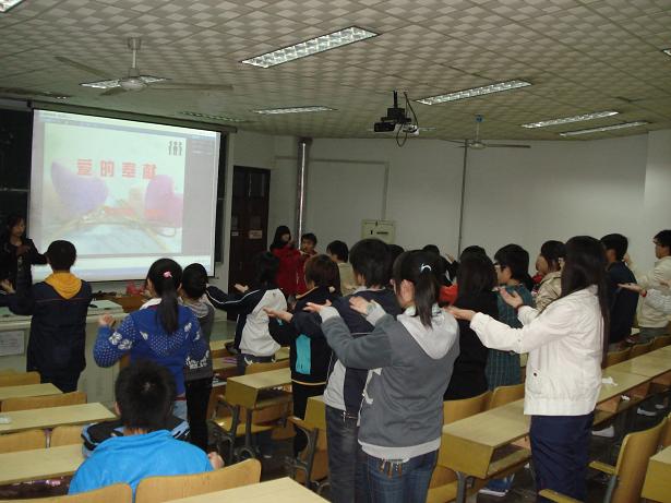 培训前,会长宋维同首先对本学期的主要活动项目做了大体介绍,并诚挚的邀请同学们参与其中。然后,副会长唐琳琳和王丽娟与同学们对以前所教的手语进行了回顾,重温了《爱的奉献》、《感恩的心》等经典手语歌。回顾中,她们对同学们出现的错误耐心的做出改正,之后,唐琳琳又将《祈祷》一点点地传授给大家,两个小时已经过去,同学们还热情洋溢的要求唐琳琳再教他们一些日常生活用语的基本动作,盛情难却之中,她又兴致勃然的教起了日常用语。