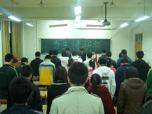 首先,他向大家详细介绍了灾区最新情况,全场陷入一片寂静。随后,全体起立,默哀三分钟,为青海玉树地震遇难的生命祈祷,为受灾的亲人祈福。