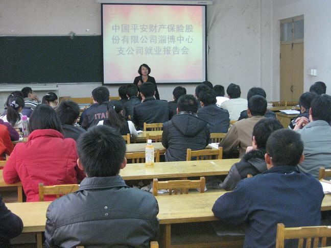 平安保险淄博分公司的毕经理就“赢在职场起跑线上”的话题为同学们做了就业指导报告。毕经理首先和同学们一起回顾2008年的金融危机给老员工就业带来的压力,并对其作了具体的分析。毕经理还对当前的就业形势作了简要的阐述。他结合图表,分析了应届毕业老员工的就业状况与就业趋向,让同学们对当前就业形势有了更进一步的了解。同时,毕经理还为同学作了自我职业定位的具体剖析。他从当前毕业老员工普遍存在“我能干什么?”、“社会可以提供给我什么机会?”、“我选择干什么?”等就业问题作了具体指导。为同学们讲解了关于求职过程应该注意的内容和事项。