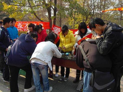 此次活动主要以征集员工感恩节的心里话和配发黄丝带为主。感恩真言征集现场,火红的条幅挂起,“心存感恩,永不言弃”的醒目标题吸引了众多同学的眼球,同学们积极参加,在留言卡上写下了他们对父母,对老师,对朋友,对社会,对阳光,对地球的感谢与祝福。