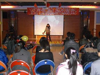 此次感恩活动在浪漫动听的歌曲《温暖的炫》中拉开帷幕,演唱者以天籁之声倾情唱出内心的感恩之情;朗诵感恩诗篇,使全场观众深受感动,现场的感恩气氛更加浓重;舞蹈《水晶拉丁》舞出曼妙旋律,优雅舞姿交织成一场视觉盛宴;“感恩的心,感谢有你,让我有勇气做我自己;感恩的心,感谢命运,花开花落我一样珍惜……”经典的手语将活动推向了高潮,激起了观众感恩的热情;表演环节同学们尽显风采,真情流露。互动环节中,由爱心家园会长宋维同抽取幸运观众,主持人向幸运者提问了关于感恩的问题并赠送观众幸运奖。最后活动在电影《神奇遥控器》放映中结束。