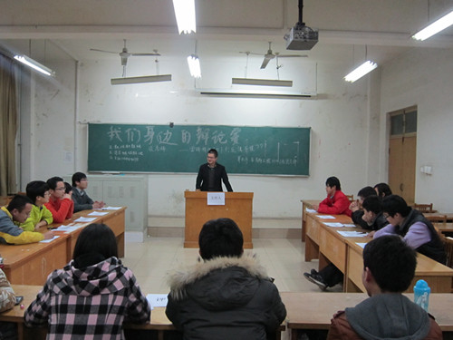 此次辩论会由车辆1104班团支书刘宏宇同学担任主持人,正反双方各五位辩手,其他同学均担任评审团成员。在新同学进行自我介绍完毕后,辩论赛随即展开。正反两方辩手准备充分,在辩论中旁征博引,进行了一场激烈的唇枪舌战。为了更好地调动现场的气氛,此次辩论会采取了特殊的模式,即在一方陈述完毕后,另一方的五位辩手均可进行反驳。在双方辩手据理力争的过程中,现场气氛一次次达到高潮。在辩论结束后,评审团同学进行了现场投票,最终正方以多票胜出,同时正方辩手陈义强被评为此次辩论会的“最佳辩手”。