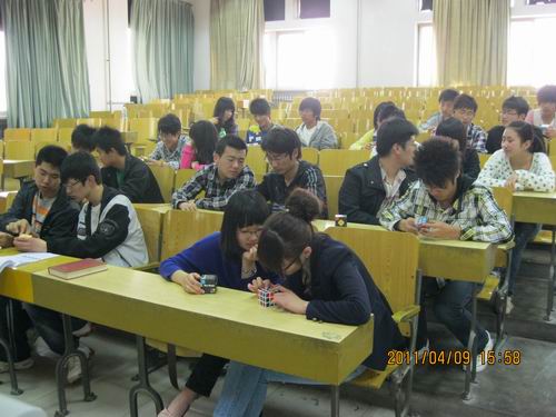 培训首先由魔方协会会长臧超向大家介绍了魔方的起源与发展趋势,并强调了魔方对提高人们思维能力所带来的帮助,让大家对魔方文化有了一定了解。随后由魔方协会技术部的成员向大家介绍了魔方的机械原理及各种玩转方法,并现场传授魔方技巧,让每个人都能亲手玩转魔方,亲身体验魔方的神奇与乐趣。同学们在享受魔方乐趣的同时,认真交流了玩转魔方的个人经验以及心得体会,加深了彼此了解,提高个人魔方水平。在本次培训的最后,魔方协会接受同学们的现场报名,为众多爱好者提供了继续发展的平台。