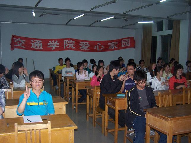 活动的主要内容是带领大家学习一些日常交际用语和手语歌《爱的奉献》,安排同学观看《2010度感动中国颁奖典礼》。首先会长刘浩就社团的基本情况及本次手语培训活动的安排作了相关的介绍。接着公敏伴着歌曲《爱的奉献》以娴熟的动作为大家做了手语示范,之后同学们跟随着慢慢的学习。最后同学们以现学的手语进行最基本的问候,全体同学起立进行手语练习。