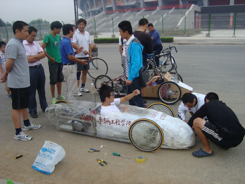 9月3日上午6:00,公司车辆0903班、交运0904班的两支节能车代表队,全副武装自己利用整个暑假亲自动手设计,制造成型及多次改造达到预期性能的节能试验车,在理工大学西门体育馆跑道上,顺利通过检验,并得到老师的全面评价。两队指导老师——车辆工程系老师纲宪约全程指导,交通与车辆工程公司党总支副书记王光坊,团总支副书记刘灿德等到场观看。