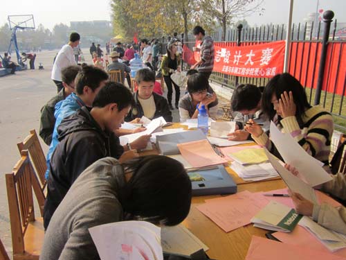 在篮球场的另一侧,公司广播稿征集处的同学正在整理同学们报送的广播稿件。他们用自己的声音传递着对运动员的激励,他们的呐喊是对运动员最好的鼓舞。“更高、更快、更强”,运动员在努力发挥自己的最佳水平。“团结、友谊、进步”,秋运会因有志愿者而更加精彩,他们的服务是无声的,是幕后的,是不为人关注的。而就是这样一群不为人注目的人撑起了秋运会的另一片天空。据悉,他们的服务将持续两天。