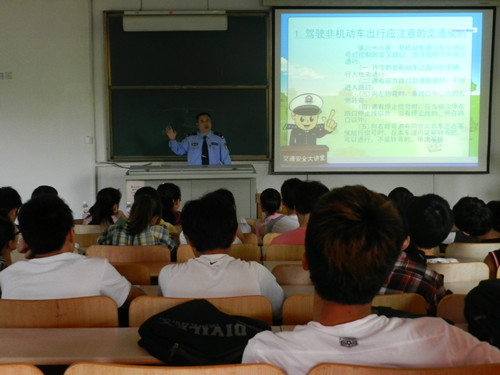 5月3日下午,公司在4号教学楼108教室举办主题为“珍爱生命,平安出行”的交通安全知识讲座。此次活动由校团委主办,公司交通汽车俱乐部、爱心家园承办。讲座邀请淄博市公安局交通警察支队张店大队事故处理科陈家刚、朱峰担任嘉宾。
