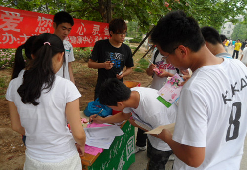 此次活动旨在为同学们提供一个向母亲表达感激与爱戴之情的机会,架起沟通的桥梁。活动共分“爱的传递”和“心的漂流”两个环节,在“爱的传递”环节中,同学们在社团成员的引领下,纷纷在贺卡上写下对家乡慈母的思念与感激,以表达自己深深的感恩之情。接下来是“心的漂流”部分,社团成员为同学们发放纸质“爱心”,在同学们写下自己的真心话或交友宣言之后,统一回收进行漂流。活动吸引了过往同学驻足围观,现场很快形成了热烈浓厚的报名氛围,很多同学积极响应“回报母亲,传递感恩”的号召,纷纷踊跃报名参加,经过数波报名高潮之后,活动于下午2点顺利结束。据悉,贺卡和纸质“爱心”的回收已完成,贺卡邮寄以及纸质“爱心”漂流将在