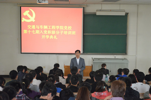 会议伊始,刘灿德宣读了《交通与车辆工程公司党校第十七期入党积极分子培训班安排意见》,从培训任务、培训时间、培训内容、培训方式、考核评选办法、培训要求六个方面,向同学们介绍了党校培训的相关规定,鼓励要求同学们专心听讲、认真笔记、勤于思考、学有所获。随后,刘清良讲话,他讲到,党的理论知识是每个入党积极分子必须要牢牢掌握的,是党员考核内容之一,是党员需要全面系统学习的重要部分。学习是一个终身的过程,随着时代的发展,党的理论知识也得以充实,因此要不断的去学习、深刻的去了解。他还向全体入党积极分子提出了三点要求:一、要端正学习态度,合理安排学习时间,严格遵守培训纪律。二、不能光会讲、不会做,要学以致用,在日常学习生活中,要用党的理论知识武装头脑,提高自身素质,自觉践行党的指导思想,真正的起到先锋模范作用。三、端正入党动机,真正在思想和行动上积极、主动学习党的知识,以自己的实际行动争取早日加入中国共产党。