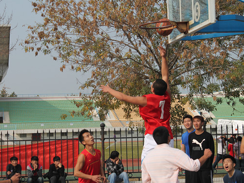 下午,另一场友谊赛拉开帷幕。此次对阵的双方是11级、12级联队和10级代表队。比赛伊始,双方队员便积极拼抢,同时也加强防守,几个回合之后仍没有得分。随着一次精妙的配合上篮,11级、12级联队率先得分,打破僵局。熟练的运球,犀利的突破,快攻、进球、防守、反攻如行云流水般一气呵成。霸气的抢板、巧妙的传球、精准的射篮、高难度的盖帽也激起双方啦啦队员一次又一次的喝彩。在开局落后的情况下,10级员工稳定战术,一路紧追,追至40:40,并在中场前以42:40的比分暂时领先。下半场的比赛更加激动人心。两队一上场比分便一直十分胶着,交替上升。比赛将近结束时,11级、12级联队利用对方的一次失误组织了一次有效的反攻,以3分的微弱优势86:83获得比赛的胜利。此次友谊赛在友好愉快的气氛中结束。