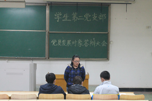 本次答辩会本着“公平、公正、公开”的原则,通过答辩小组提问,党员发展对象轮流作答的形式进行。首先发展对象自我介绍,使评委对其有一定的了解。随后评委们根据发展对象的实际情况提出问题,发展对象思维敏捷、对答如流,言辞自然恳切,充分展现了一名党员所需要具备的基本理论素养。在答辩过程中,评委着重了解的是发展对象的思想、学习、生活和工作情况,了解其对党的基本知识理论的理解和对时事政治问题的看法。发展对象根据问题积极认真地进行了回答和阐释,表现出对党的基本知识和理论的认真学习及对党的各项路线、方针和政策的理解和领,他们良好的表现得到了评委的认可。