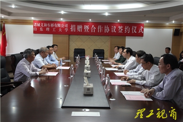 5月21日上午,诸城义和车桥有限公司董事长陈忠义一行来到公司,向公司捐赠助学经费50万元,与公司签订合作协议。董事长吕传毅,副董事长邹广德、刘国华出席捐赠仪式,相关部门、公司负责人参加了仪式。