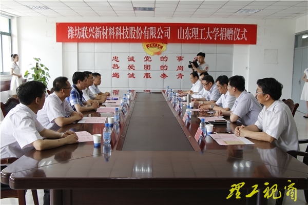 5月26日下午,潍坊联兴新材料科技股份有限公司冠名挑战杯和创青春竞赛的捐赠仪式在团委会议室举行。潍坊联兴新材料科技股份有限公司总经理段胜增、副总经理边涛,公司党委副书记张宇声、副董事长张祥云出席仪式,相关部门、公司负责人参加仪式。张祥云主持仪式。