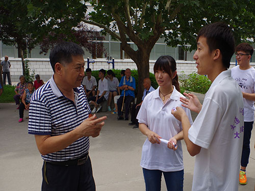 实践团队长韩建兴等则对负责人进行访谈,询问关于公益旅行的问题,得知敬老院做义工同样属于公益的范畴。在交谈中队员们了解到来此做公益活动的义工大多随队前来从未遇到进行公益旅行途中做义工的先例。同时,负责人表示在他工作的近10年来,老员工来进行志愿服务的人数和频率都有很大的增长,每年都会有相当一部分青年员工来此做义工,给敬老院的工作带来很大帮助。活动最后,负责人对队员们的到来表示感谢,并希望公益旅行活动取得成功。
