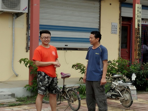 随后,省派第一书记朱玉国同“爱之传承”实践团负责人陈建光进行热切交流。他带领陈建光观察这一年来西店村以及周边巩庄的变化。西店村在朱玉国的带领下,注重生态环境的治理,配合发展果蔬采摘园,近几年来在经济和旅游方面取得极大的发展。陈建光向朱玉国了解西店村及周围村庄内的留守儿童及孤寡老人现状,对各村的基本情况有了更进一步的了解,为日后实践活动的开展做好了充分的准备。