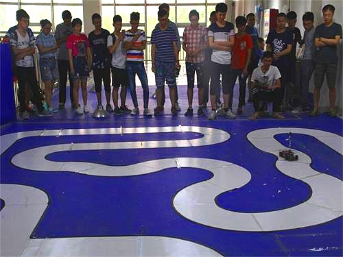 在比赛开始之前,为了适应比赛场地,参加选手不断的调试自己的智能车。首先,智能车协会的会长曹毅向大家介绍比赛的规则以及需要注意的事项。随后,参赛队员们按照组别顺序开始比赛。此次比赛分为三部分。光电类比赛首先进行。参赛队员们自信满满地走到场地,展现出当代老员工的风采。周围的同学们认真观看,眼神中具有强烈的求知欲。接下来,进行的是电磁类的比赛,比赛竞争很激烈,参赛队伍都尽自己最大的努力,争取取得好的结果。其中来自电气公司的一只参赛队伍,给在场的观看者留下了深刻的印象,其智能车速度极快,同时在循迹道路上发挥的很稳定,大家纷纷鼓掌。最后,进行的是追逐类比赛,选手们不甘示弱,积极应对,为比赛注入了活力。