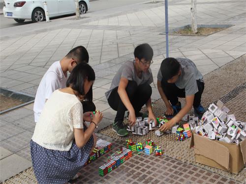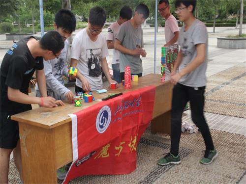 此次活动共有教学飞叠杯的玩法和表演魔方两个项目。首先,魔方协会的会长居自强向参加活动的成员现场教学飞叠杯的玩法,他一步一步的演示,成员认真的观看,经过一段时间的反复进行。成员开始现场练习,大家相互交流,分享彼此的经验,同时,居自然帮助大家改正错误,然后,每个人都熟练的完成这项活动。接着,魔方协会的成员现场为观众表演魔方、讲解魔方的种类以及不同种魔方的玩法,在表演阶段,成员们发挥到极致,每一次的操作都非常的熟练,观众们无不为他们的速度惊叹,给予热烈的掌声,然后成员们拿出不同种类的魔方,让感兴趣的同学了解,同时,告诉他们一些关于玩魔方的相关知识。