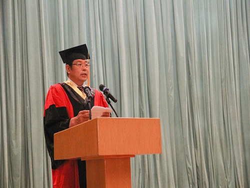 仪式进行第一项,高松经理进行致辞,他首先祝贺全体毕业生顺利毕业,并对毕业生们所取得的成就进行了赞扬。他向全体员工讲述了“厚德,博学,笃行,至善”的校训,并深度剖析了其中的含义,希望全体员工能够在社会上发扬落实。接着他送给了毕业生们四句话:有思路才有出路,有创新才能有发展,有团队才有力量,有作为才有地位。高松对毕业生们讲到,毕业不是终点,而是人生的另一个起点,毕业生进入社会后,要懂得学以致用,要将大学里的创新、求知精神应用到实践中去,要懂得与他人合作,在不断地学习中提升自我,为社会创造更多的价值。他满怀希望的发言让毕业生受益颇深,最后,高松在热烈的掌声中结束了致辞。