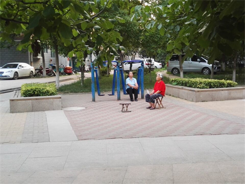 石村是张店区较早完成社区改造的村镇之一,后续的物业和服务设施也已基本完备,村内设置有室内游泳馆、室内棋牌室、便民广场、室外健身器材等文娱设施。在村委会领导的引领下,实践团队员们参观了整个社区,对社区的文娱设施有了初步的确认。为了真实了解社区各项文娱设施的使用情况,同时考虑到村民们的活动时间和天气,队员们决定在下午6时村民活动集中时间段再来走访记录真实生活。
