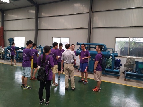 在团队到达的时候,公司的闫总经理正在公司门口等候,随后闫总经理邀请团队成员去他的办公室。在团队负责人简单地介绍了此行目的之后,闫总经理表示欢迎,并简单介绍了公司一些近年运营发展的概况。随后,闫总经理带领团队成员参观了公司的专利室,专利室里摆满了闫总经理近几十年所获得的所有奖杯。由于今天屋外下着雨,室内比较闷热,但闫总经理不顾闷热,依然仔细地给团队进行讲解。其中的多流体凝汽器让成员们发出了声声惊叹,其以工质在负压条件下低沸点运行的特点,在全国也是首屈一指,在场的团队成员纷纷表示懂得了知识转化为产品的不易。