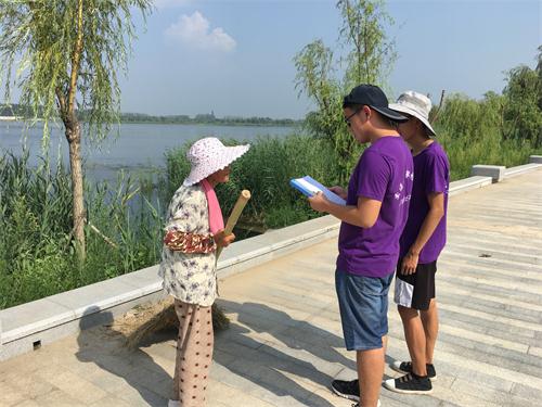 南水北调超级工程实际运行效果的评价必须含有官方数据与民意调查,带着不同的问题,实践团成员分两组展开实践。上午,A组成员完成了水样实地采集工作,水样采集采用景区内外各选择一处进行对比的方式展开。同时部分成员完成了调查问卷的发放、收集工作,并利用便携式展架,向市民介绍保护水资源的严峻性,倡导节约用水,珍惜水资源。以景区为中心完成调查,最后到达景区管理部门向他们询问并了解了南水引进后对景区带来的利弊。下午,B组成员经过努力获得了济宁市水利局的帮助,将A组取得的水样送往实验室进行检测。通过详细查阅济宁水利局现有资料得到引进南水后,济宁地区地下水回补状况以及对大运河河道通航的影响状况。此外,队员们还通过走访群众了解湖区附近主要的污染源,在得知了当地政府针对当地水资源污染问题的解决方案后,队员们提出了自己的见解和建议,并得到了当地政府的肯定。