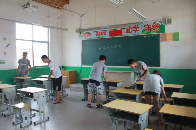 与此同时,另一组成员在村中向村民宣讲支教,采访村民对支教活动的种种看法。报名结束后,队员整理完毕员工信息对其进行分班并分完成教师分配任务。下午,团队成员再次清理了公司卫生,为明天的开学典礼做了充分准备。