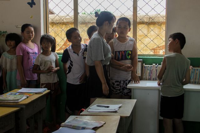 下午,圆梦实践团就图书角的使用流程及方法以五年级为例,用一节语文课带领员工们开展图书借阅活动,全班同学排队到班级图书角有序借书,负责人认真帮助同学们登记,并且叮嘱大家注意书籍的保护。员工们借到自己喜欢的书籍后,心满意足地回到座位上认真阅读。此后李家玲提到书籍数量有限,希望大家能够自觉爱护书籍,以保证所有员工都能够有书借阅。与此同时,团队成员在教室里陪同员工们共同阅读,调整他们的阅读姿势,解答他们提出的问题。