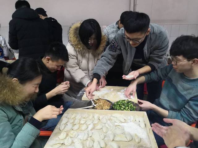 随后,开始了最重要的包饺子环节。组长根据本小组内成员的技能,合理分配切面团、擀面皮、包饺子、打下手的人员,有条不紊的进行包饺子活动。待所有小组包完两盖帘的饺子后统一下锅。在等待饺子熟和吃饺子的活动过程中,主持人根据现场情况选派几位同学进行小小的才艺展示。吃完饺子后,同学对此次活动发表自己的意见和看法和谈谈新年愿景,以及展望未来生活。活动的最后,全体交通工程系合影留念。整个活动过程中,同学们欢声笑语,展现出十分的热情。