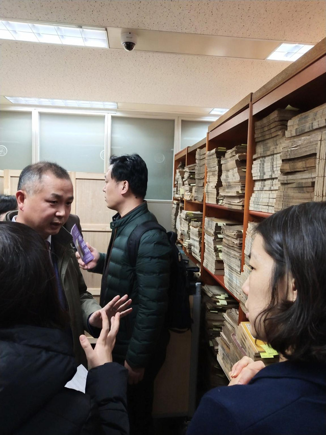 随后,访学团一行来到成均馆“600周年纪念馆”,充分了解了成均馆600余年的发展过程,参观了成均馆重要的学术研究机构——东亚学术院和尊经阁。尊经阁作为朝鲜时代最高教育机构的附属图书馆,收藏有大量古籍文献,期中线装古本八万余册、平装图书三千八百多本,多达二十余万页的古书原文图像一千零四十种,微缩胶卷一万八千余卷,古文献CD三千多张,现已成为研究东亚文化的重要学术中心。