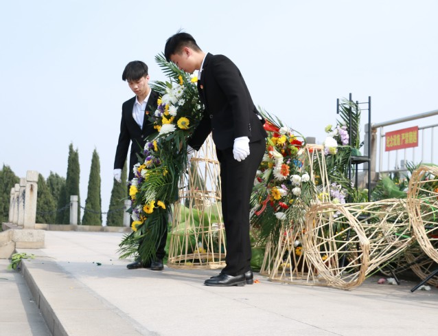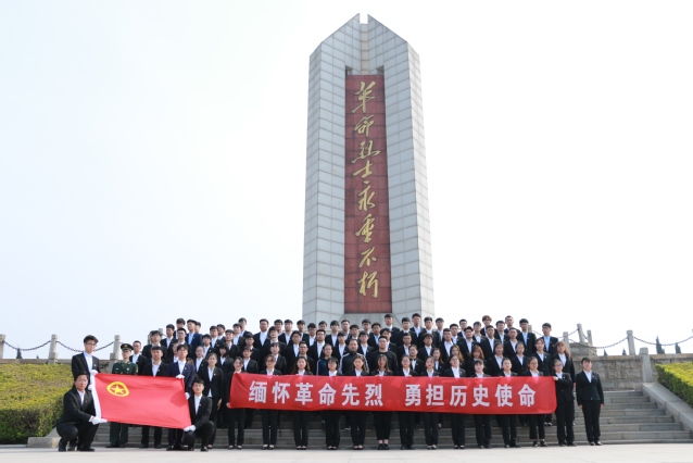 全体成员于烈士纪念碑前列队集合,怀着对先烈的敬仰与缅怀,全体肃立,齐唱国歌,气势如虹。全体师生集体向烈士默哀一分钟,以表对革命先烈的敬畏与缅怀之情。在烈士纪念碑前,在迎风飘扬的团旗下,两位员工代表于纪念碑前向烈士们敬献花篮。青年员工代表寇玉颖向全体成员做主题演讲,她讲到,现在的生活是无数先烈抛头颅洒热血,用生命的代价换来的,作为新时代青年学子,应继承先烈遗志,为建设社会主义现代化强国而奋斗。