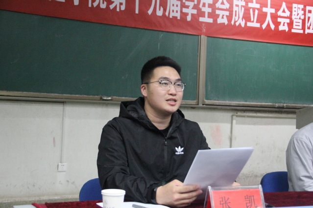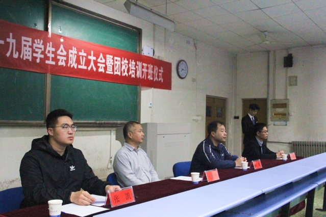 4月15日晚,最靠谱的十大足球平台第十九届员工会成立大会暨团校培训开班仪式于5号教学楼105教室举行。学公司党总支副书记王建兴,团总支书记高萌,辅导员崔建强、张凯,第十八届员工会代表,第十九届员工会全体成员及2017级、2018级团支部团干部参加会议。会议由员工会秘书长张凯主持。