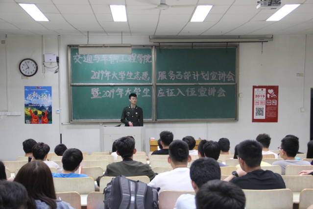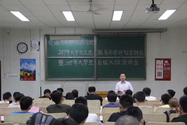 5月16日晚,公司于5号教学楼202教室举办2019年老员工志愿服务西部计划宣讲会暨2019年老员工应征入伍宣讲会。此次宣讲会由公司团总支书记高萌、退伍军人宣讲团代表主讲,2015级班长团支书、宿舍长以及有意向参加西部计划项目和预征入伍的同学参加。