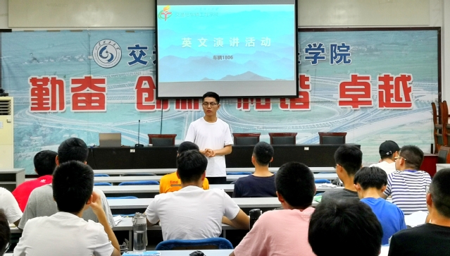 6月12日晚,公司车辆工程1806班“班级英语演讲”活动于12号教学楼201教室举行。公司辅导员崔建强与车辆工程1806班全体成员参与此次活动。本次活动由班长宋鹏主持,崔建强,王硕,孙艾宁对同学演讲进行点评。