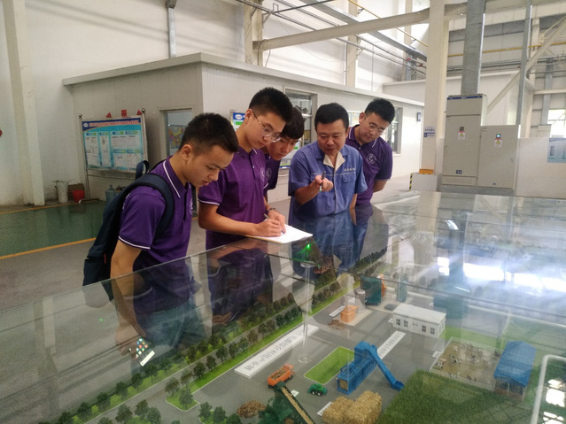 到达目的地后,实践团队与淄柴机器有限公司副总经理张世越进行对接,他对于团队成员的到来表示热烈欢迎。在张世越的带领下实践团队首先来到装试车间,他首先向团队成员介绍了该车间的整体情况。该车间一体化生产系统集养殖场、炼铁厂、煤矿厂于一体,科学环保,高效节能,充分体现了工业转型的发展理念。