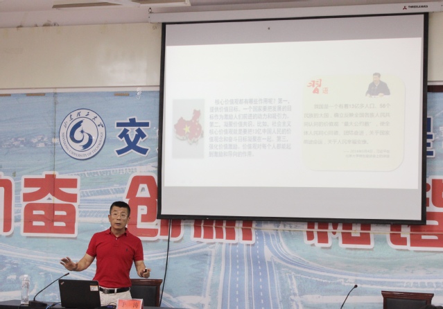 淄博市委讲师团副教授、山东省演讲学会副会长、淄博市学习贯彻党的十九大精神社科专家宣讲团成员于涛受邀作报告,于涛从什么是社会主义核心价值观、为什么要培育和践行社会主义核心价值观、如何培育和践行社会主义核心价值观三个方面作了精彩报告。讲座深入浅出、旁征博引、阐述深刻、令人深思,进一步加深了公司教师对社会主义核心价值观的理解,对牢固树立文化自信和价值观自信,更好地履行教书育人的职责使命,更好地培育“五有”人才具有指导意义。