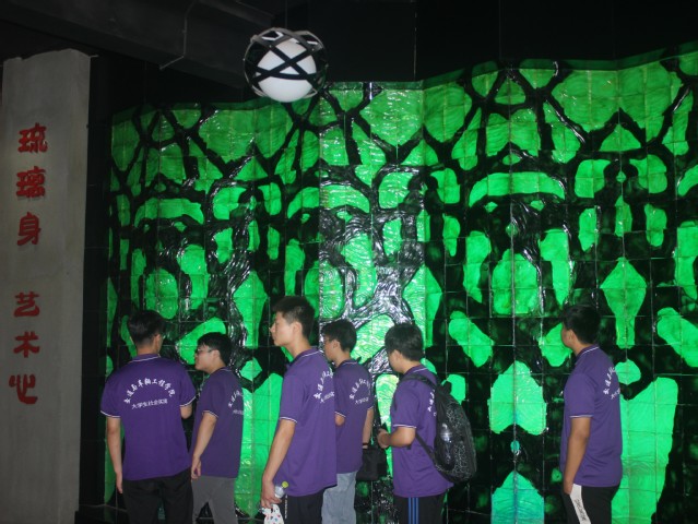 在经过工作人员的简单介绍后,团队开始参观。博物馆一楼是艺术展览馆,以工艺品为主。生动逼真的葫芦与蟋蟀,惟妙惟肖的白天鹅……琳琅满目的琉璃工艺品让人眼花缭乱,成员们被其精湛的工艺所吸引。