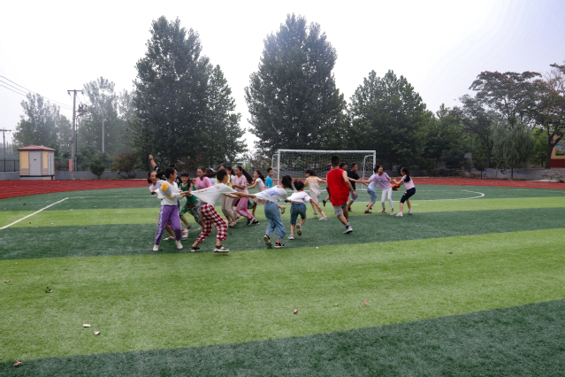 第二个游戏是老鹰捉小鸡。主持人将男生分为一组,女生分为一组,男生组和女生组分别进行游戏。游戏进行时,每个人都集中精力,身体前倾,调整队伍节奏。此次团辅活动在同学们的欢笑声中开始,在欢笑声中结束。