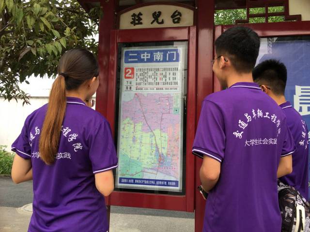 该站点共有6条线路,分别为1路、2路、6路、9路、10路和17路,其间还可以由常规公交向BRT转换,每条线路的公交数量相差无几,发车间隔时间相对固定。实践过程中,队员们结合自身优势在该站点进行交通流离论实验,分析判断公交停靠站设置是否合理,停靠泊位数与停靠线路数是否匹配;确定停靠站通行能力与泊位数的关系。此外对公交车辆线路、车辆到达时刻、车辆离开时刻、车辆到达间隔、排队时间、滞留时间、上下客和车辆停留时间等数据进行统计、分析。