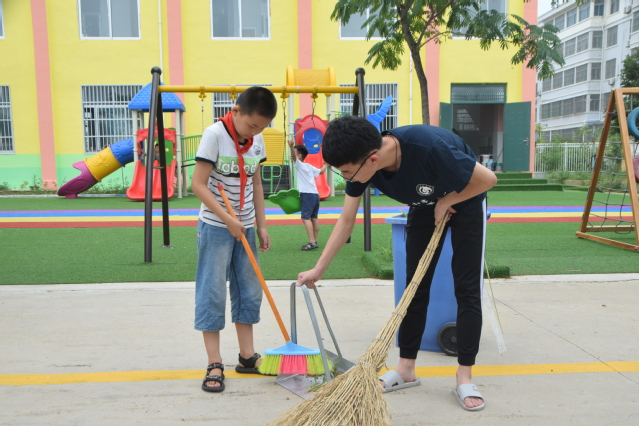 在活动过程中,同学们热情洋溢地进行大扫除活动,展现了同学们阳光向上,精神饱满的良好状态。即使是一年级的小员工,也积极主动地跟在实践团成员身后,做一些力所能及的劳动。