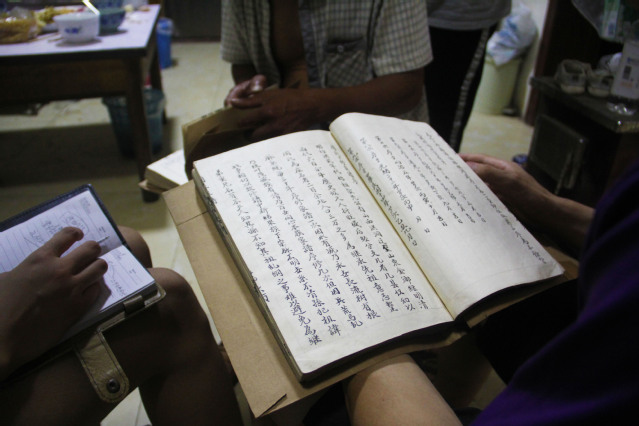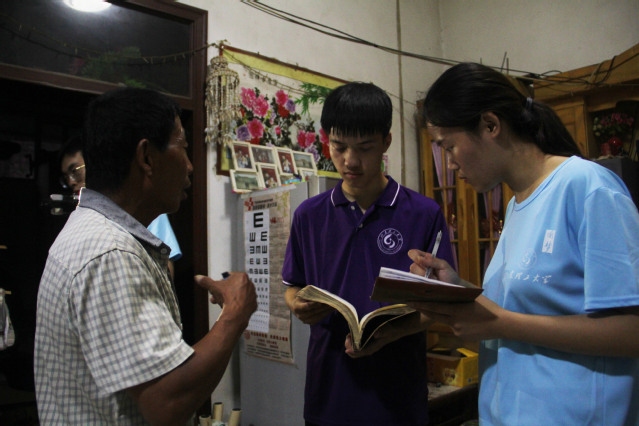 实践团在村长等人的帮助下,在一位周姓老人家里找到周姓家谱。老人一边翻阅着家谱,一边向成员们讲述着家谱的来源和发展进程。当谈及周姓家谱最初的记载和历史渊源时,老人侃侃而谈。通过与老人的交谈,成员们了解到家谱文化中蕴藏的家风文化。老人讲到,周姓家谱记载了周家的历史文化,历史就这样刻在了周家祖祖孙孙的心里,文明也就这样代代相传。在翻阅过程中,成员们发现家谱中不仅有周姓辈分的记录,也有家风家规的记录,里面涵盖了为人处世的方方面面。据悉,家谱在前几年得到修缮,老人说修缮家谱需要周姓一族中的长者组织在一起经汇总整理和考证后编入族谱。