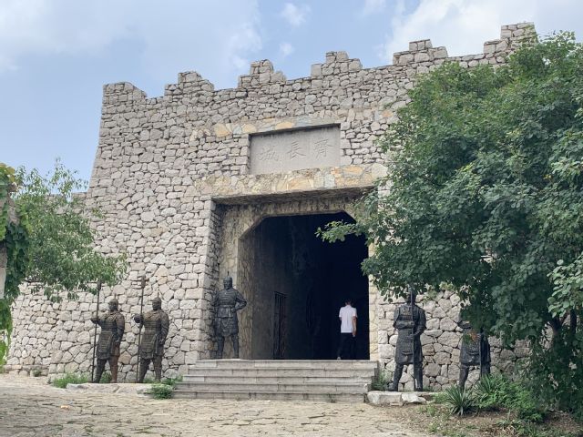 齐长城始建于春秋时期,完成于战国时期,历时170多年筑成,迄今已有2600多年的历史。这段齐长城是1993年在原址上修复的,整个城体高2至6米,内宽4.5米,外宽5.5米,全长680余米,长城巍峨壮观,上面有着当年守卫长城将士们的雕塑,使我们仿佛走进了那一段战火纷飞的岁月。曾经的齐长城虽然早已经消失,但是修复的齐长城给了我们对齐长城的直观感觉,站在齐长城上,我们可以感受当年齐长城之壮观,齐国国力之强盛。
