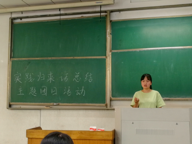 随后活动开始,首先由各实践团依次推选代表,向同学们讲述暑期的实践经历及个人感悟,在交流与反思中成长;第二项,由团支书牵头,中国70年时光变迁为题,以自身20余天的实践经历为主线,向同学们讲述他所看到的新时代的巨大变迁。许多同学感同身受,纷纷讲述自己所见的身边巨变;最后一项是提问环节,穿插于第二环节中,在每位同学讲述后进行提问,让更多的同学回忆起自己所经历的变化,思考变化之根基。
