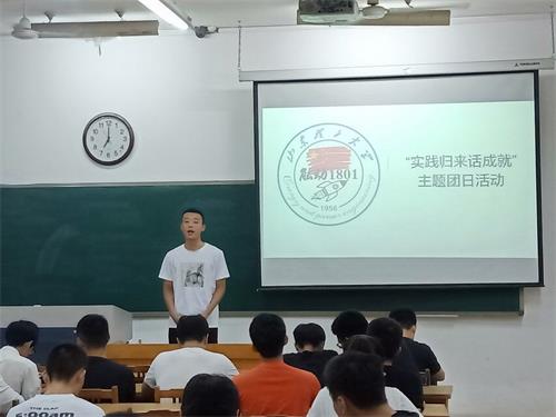 为了总结本阶段社会实践经验,方便各社会实践团队相互学习,进一步深化班级社会实践成果,能动1801班于9月7日在十二教210教室开展“实践归来话成就”团日活动。本次活动由班长聂深强主持,能动1801班级全体成员参加。