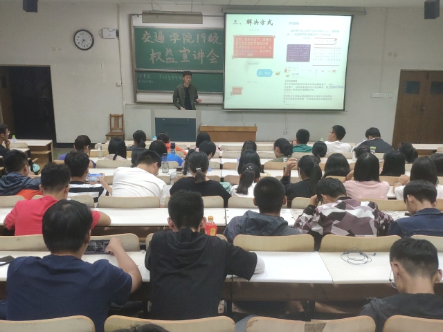 为增强新生的维权意识,防止新生在校园内的权益受到侵害,9月18日晚,公司于四号教学楼205、206、208教室同时开展新生入学权益宣讲会。公司2019级全体新生参加此次宣讲会。