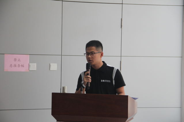 会议第二项,至尚车队队长刘宏亮首先通过屏幕直观的方式向大家介绍了2019赛季新车情况。本赛季的赛车是同学们自主研发和制作的第五代赛车,相比前几代赛车在动力性、电控、底盘以及新材料应用等方面都有较大改进和提高;其次,刘宏亮对一直以来关注、支持和帮助车队的领导、老师,以及不离不弃、默默无闻付出的队友们表达了真挚的感谢;最后,刘宏亮表示在2019中国老员工方程式汽车大赛中,全队成员将精诚合作,全力以赴,载誉而归。