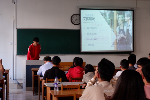 答辩会分为PPT展示和公开答辩两部分,每个班级限时8分钟。各班级根据上学期开展的有关工作,结合达标要求整理本班级达标材料,并精心准备PPT进行现场展示汇报。答辩过程中,汇报人从思想建设、组织建设、文化建设、学风建设等四个方面对班级达标建设情况进行详细介绍,总结了班级建设中的特色做法和不足之处,对今后的班级工作进行展望。