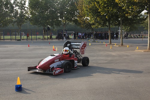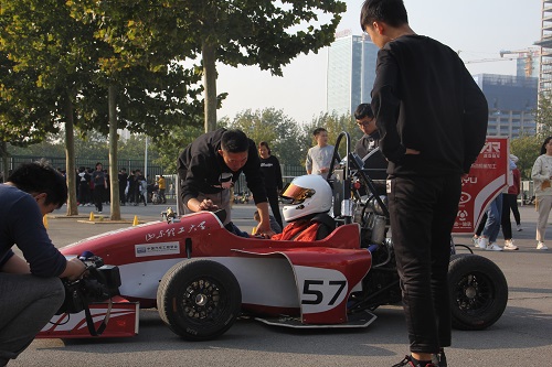 紧接着,记者团队与车队成员来到第四体育场准备开始今天的采访。采访之前,由车队赛车手先带来一段方程式拉力车的表演赛,在经过一系列调试后,轰鸣声响起,摄像机就位。