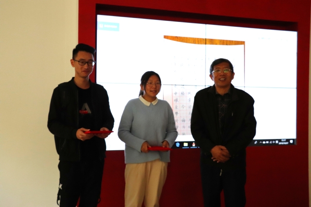 决赛阶段共分为比赛及点评两个环节,所有晋级选手于27日下午两点到达215教室并签到,主持人讲解比赛规则及注意事项后,所有选手在30分钟内完成作品书写。稍后工作人员作品收集及编号、拍照,同时所有选手转移至217教室,听候评委点评。评委成员为数学与统计公司党总支书记王文锋、鲁泰纺织服装公司党总支书记徐启达以及建筑工程公司党总支副书记王延深。经过一番研究、讨论,评委老师对作品进行打分,并由徐启达书记作为代表发言。徐启达书记对其中两份作品对起笔,字形、偏旁等方面做出点评,着重强调了硬笔书法的重要性并对同学们表达了鼓励和期望。活动最后,主持人宣布获奖名单,比赛共选出一等奖两名、二等奖三名、三等奖五名。评委老师对获奖人员颁发证书,并合影留念。